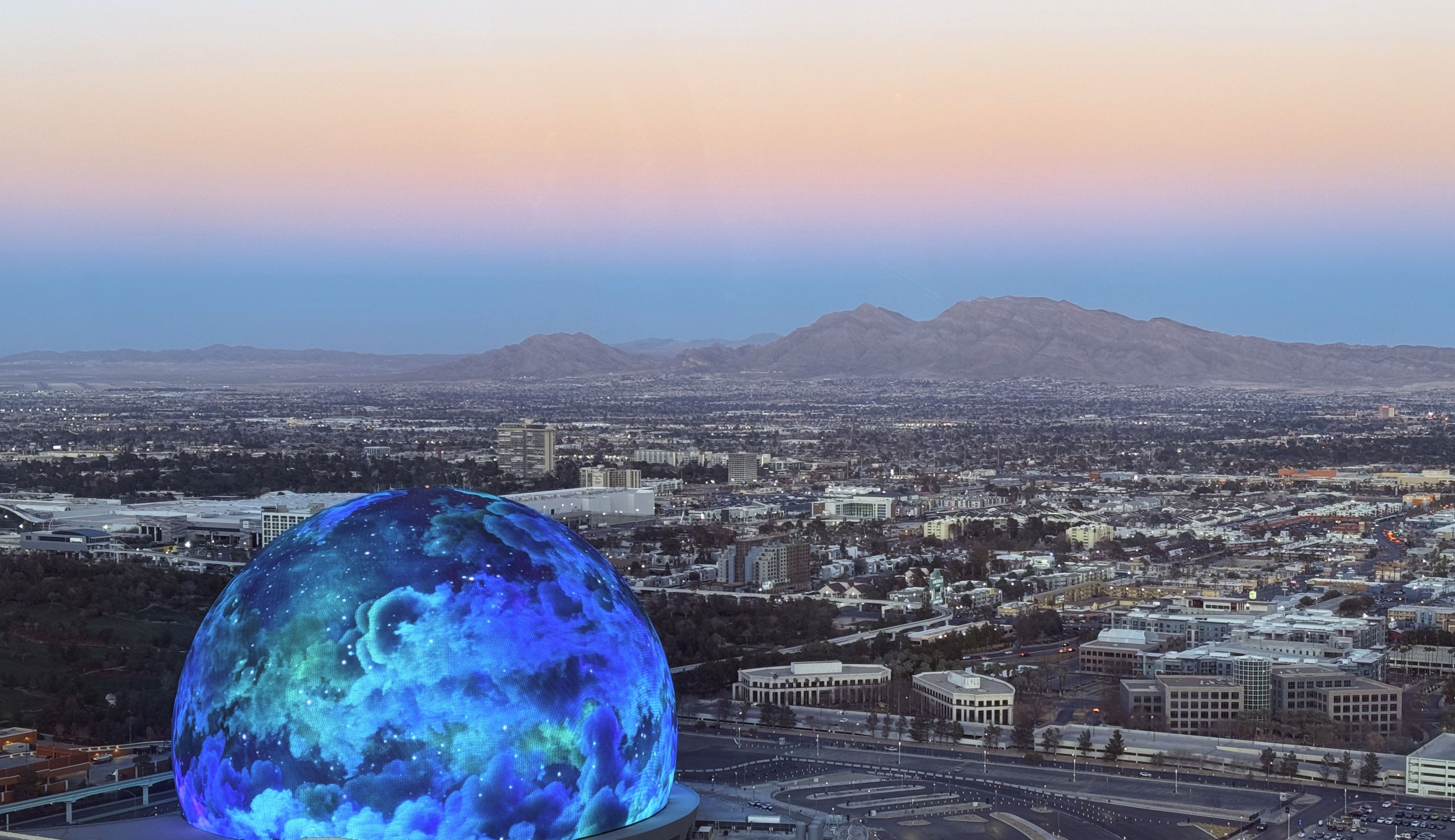 Location: Views of Red Rock canyons and the Las Vegas Sphere taken from the Las Vegas Strip High Roller Observation Wheel at The LINQ